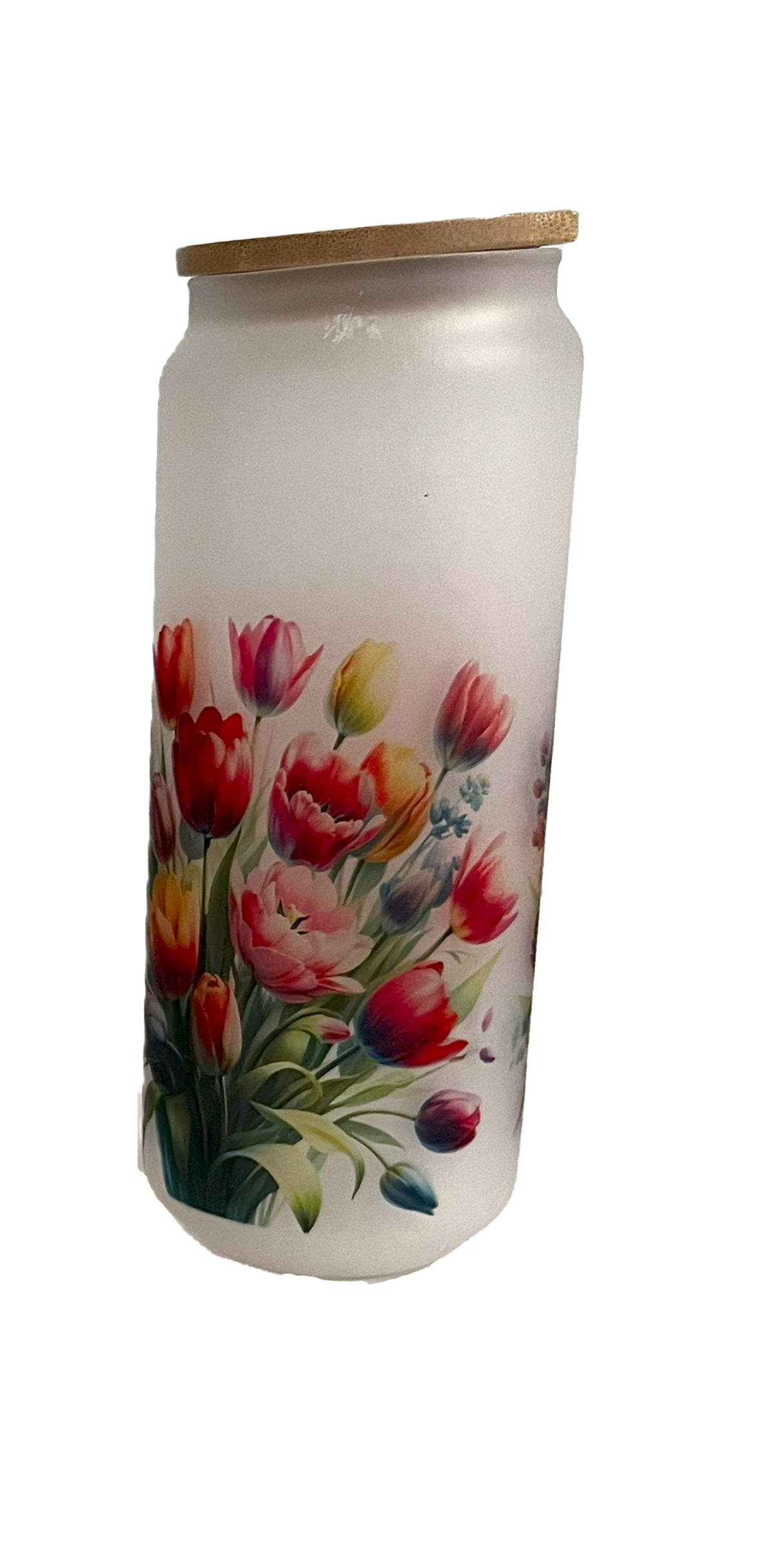 Tulip Motif Ceramic Glass Can - 20-oz.